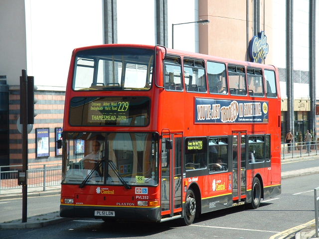 manoeuvre. London Central buses PVL252 is seen in the wqarm summer sunshine