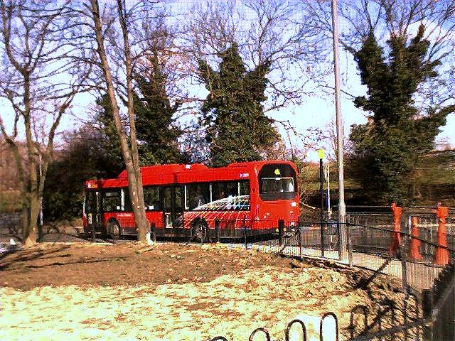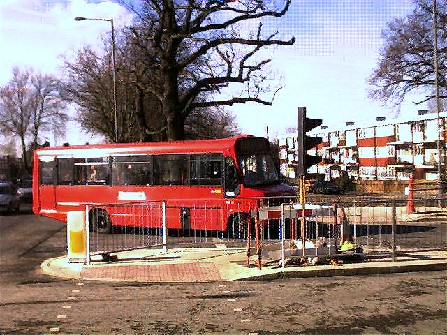 This is the gas version of the bus a DAF SB220s with East Lancs bodywork. Seen here in Baker Road at the junction with Shooters Hill Road, on Sunday 25 February 2001. Woolwich Common can be seen behind the bus. Follow this link for more on this route. Photograph. John King. |