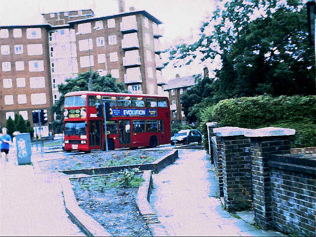 A Titan on route 321 in Eltham High Street on a wet day 6 July 2001