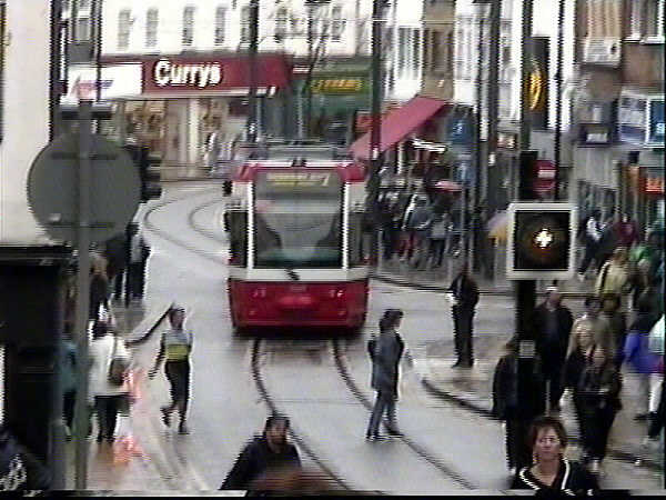 on the corner of George Street and North End. The tram is about to descend