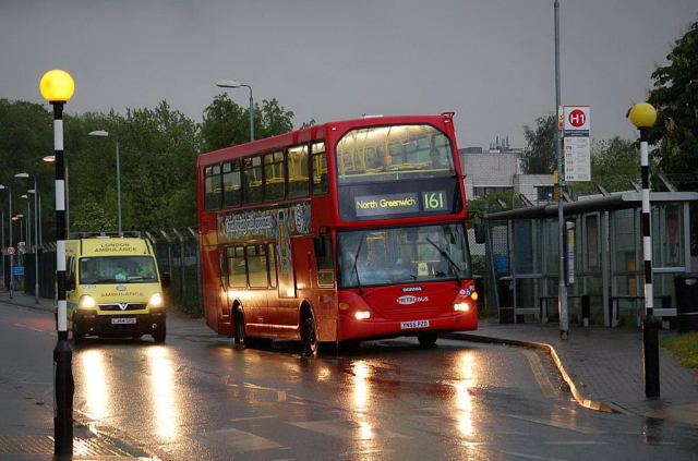 Metrobus 902 on route 161 stops outside the Queen Elizabeth Hospital