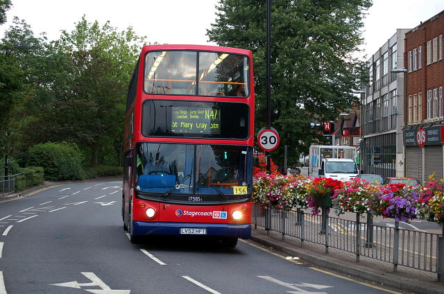 Stagecoach 17585 on route N47 in Orpington High Street. It looks very