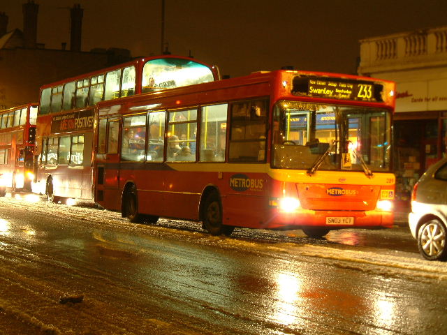 Metrobus 289 on route 233 in Eltham High Street. behind is VWL14 having