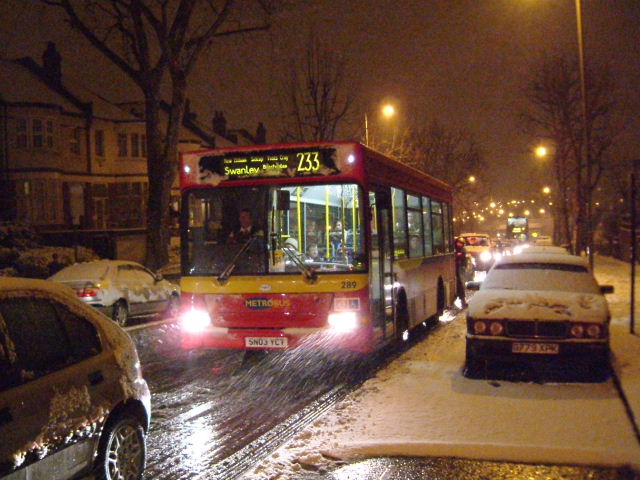 snow came down. Here East Thames VWL14 (LB02 YXW) on route 132 is at Eltham