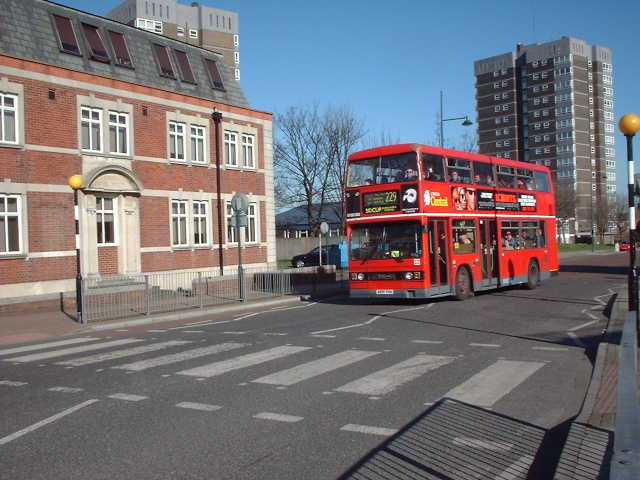 Sidcup, Sidcup (Queen Mary’s Hospital). Bound for Sidcup. The 229 was a replacement route for the 698 trolleybus between Bexleyheath and Woolwich via Erith. Now it only goes as far as Thamesmead. Now only the 469 goes to Woolwich along the bottom road, but as it goes round the Abbey Estate in the Woolwich direction and via Slade Green and Barnehurst to Bexleyheath it means increased journey times for those who use it. On the left of the photograph, Erith Town Hall. and behind it and the