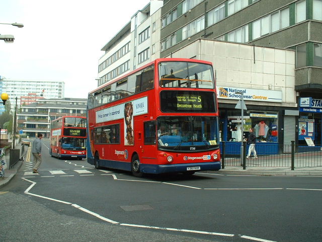 Stagecoach 17361. Y361 NHK. on route 5, going to Becontree Heath. Just