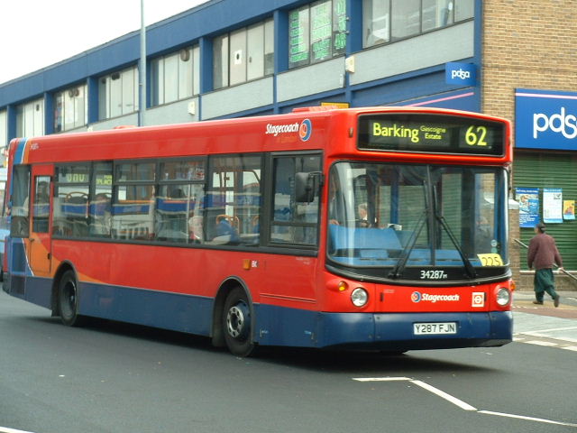 Stagecoach 34287. Y 287 FJN. on route 62 terminating at Barking. Route