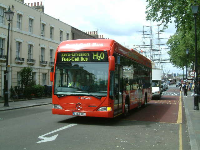 This is a Zero Emission Hydrogen Fuel-Cell Bus, which has water as the