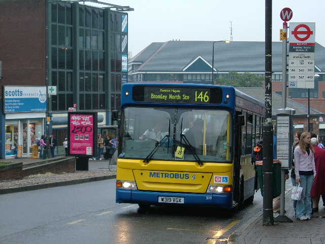 In original Metrobus livery is 319 on route 146 at Bromley South station,