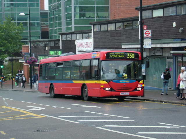 Metrobus 523 a Scania Omnicity, on route 358 at Bromley South Station,