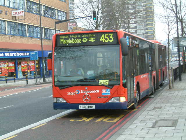 Stagecoach 23030 (LX03 HDV) 0n articulated route 453. 16 January 2005.