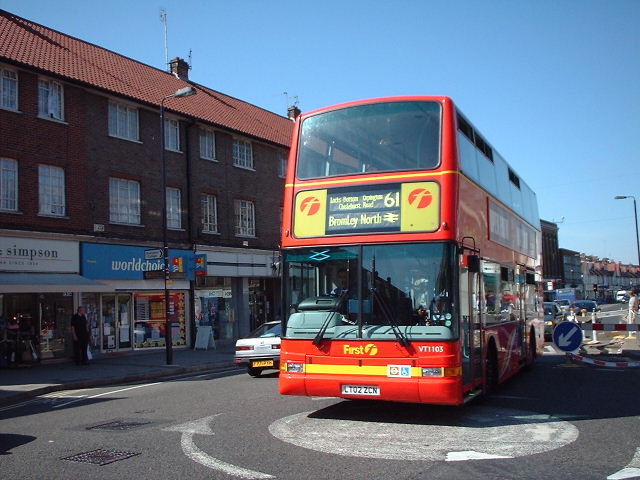 VT1103. LT 02 ZCN. In Orpington Hight Street on route 61. This