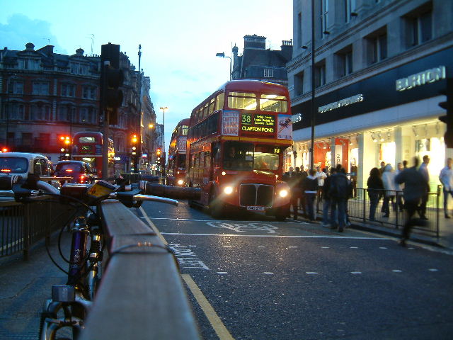 St Giles Circus, The building over the bus is Centrepoint.