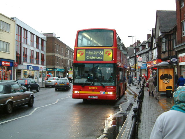 First VT1105. LT02 ZCU. on route 61 in Orpington High Street