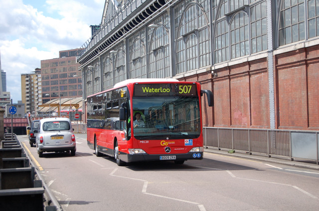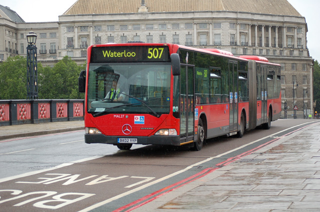 towards Waterloo is London General MAL27. Seen devoid of the Red