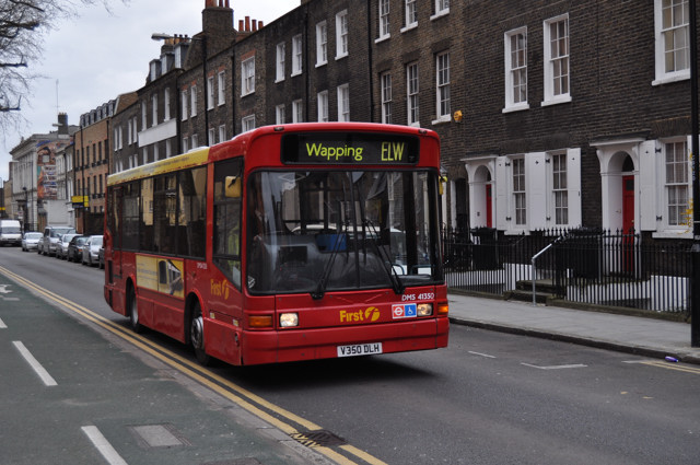 DMS41350 is seen on route ELW in Cable Street near Shadwell Station.