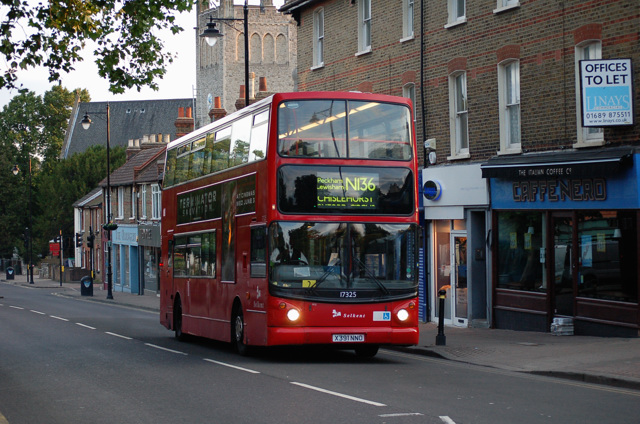 too lang after dawn we see Selkent 17325 in Chislehurst High Street on