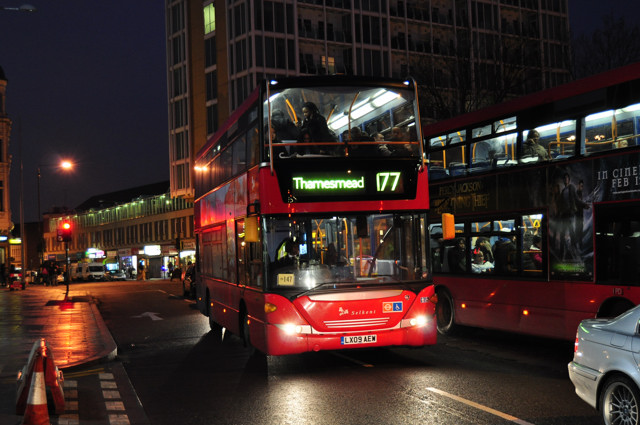in Thomas Street, Woolwich It is seen passing a bus at the stop to pull