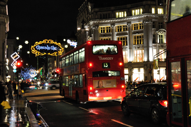 A rear view of Transdev SLE39 on route 13, seen at Oxford Circus. 29 November 2009. |
