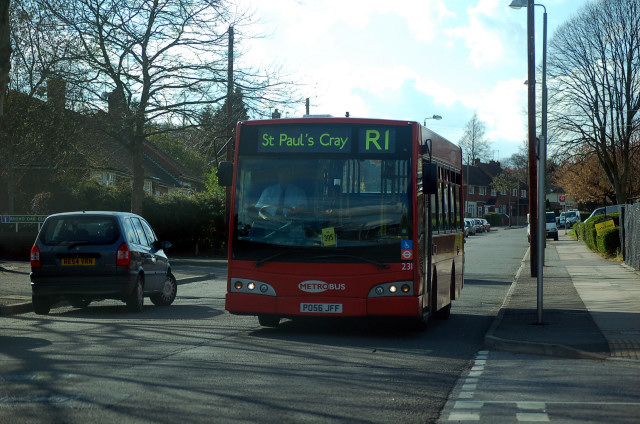 Metrobus 231 on route R1 in Mickelham Road 7 April 2009. |