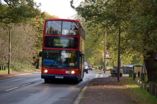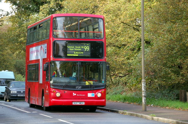 Selkent 17217 on route 99 crosses the heath on Bostal Hill. The 99
