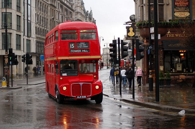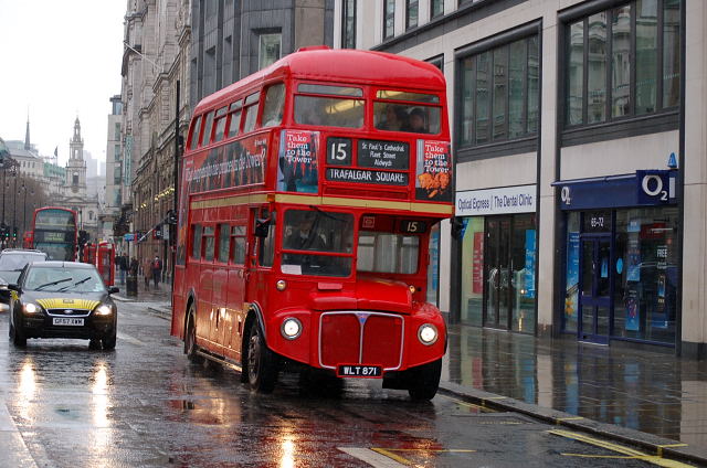 | Heritage route 15, RM2050 seen just entering Aldwych on a cold wet