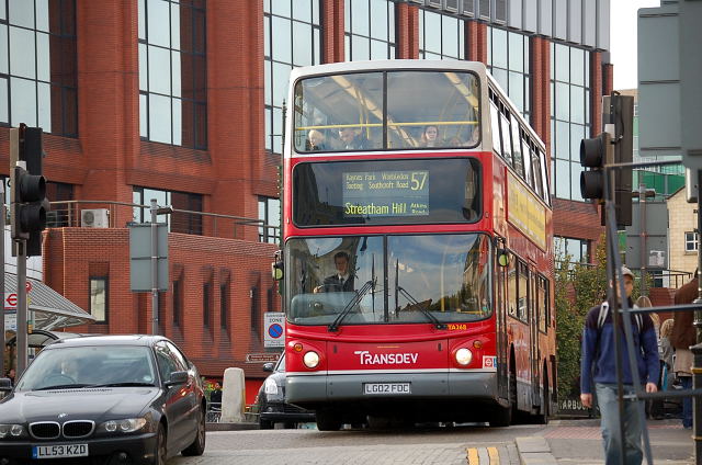 Transdev TA268 on route 57 seen at Wimbledon Bridge, outside the station.