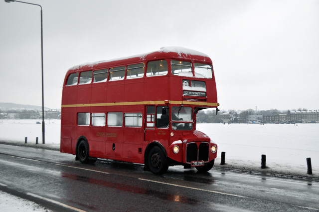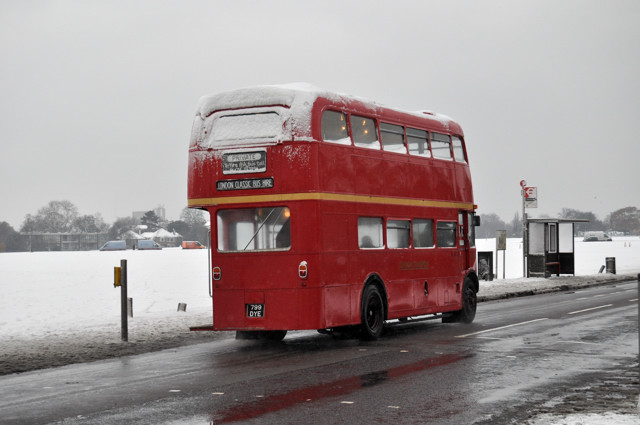 Seen crossing a snowy Blackheath on the A2, Shooters Hill Road is Red Route's RM1799.