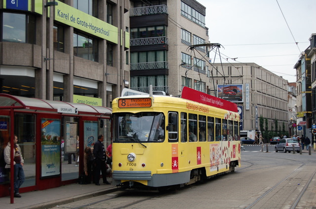 De Lijn 7008 again at Groenplaats ( Green Place) on route 8. 1 September 2008. Photograph. John King. |
