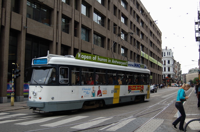 De Lijn 7036 in Groenplaats on route 4. 1 September 2008. Photograph. John King. |