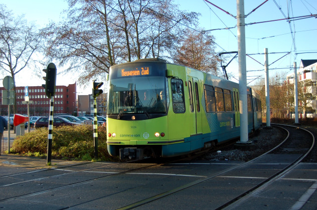 Connexxion tram 5024 seen aproaching Nieuwegein, Stadscentrum