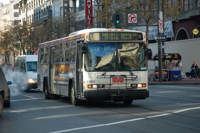 One of Muni's hybrid buses 8416, on route 71 on Market Street.