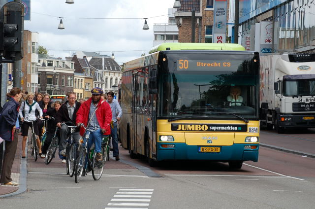 smoothly despite the large amount of cyclists. This bus carries an allover