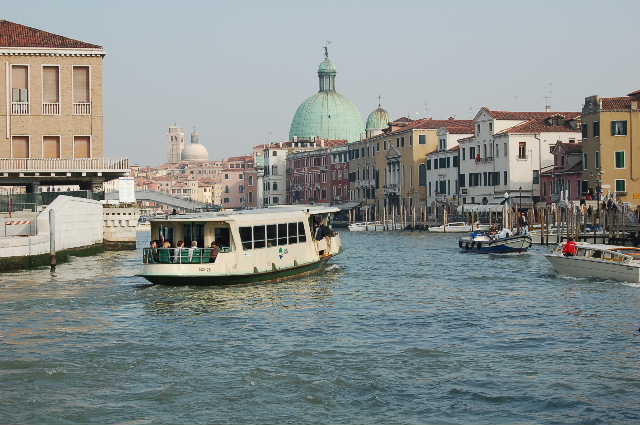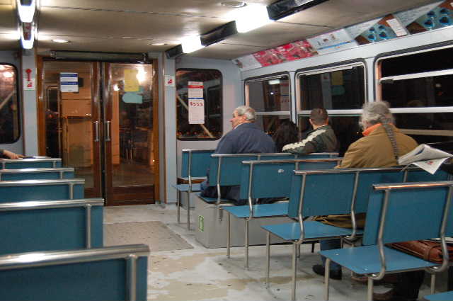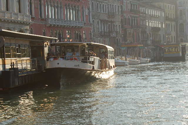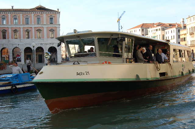 Vaporetto, (water bus) ACTV 25 seen on the Grand Canal in the heart of Venice. 10 November 2005. |