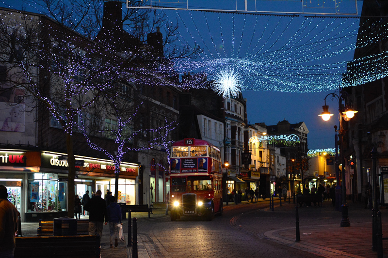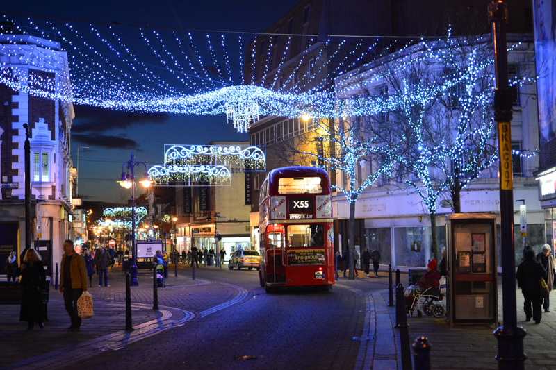 Gravesend shopping centre on route X55, on the pre-Christmas running