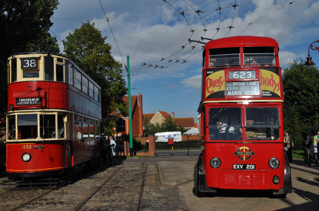 The Chapel Road end of the museum. The terminus of the trams and trolleybuses. Here we see tram 1858, and trolleybus 1201. 11 September 2010. Photograph. John King. |