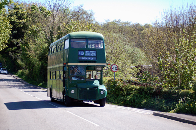 Out from East Grinstead on the running day RML2330 is seen on route 410 somewhere on the Godstone Road. 26 April 2009. Photograph. John King. |