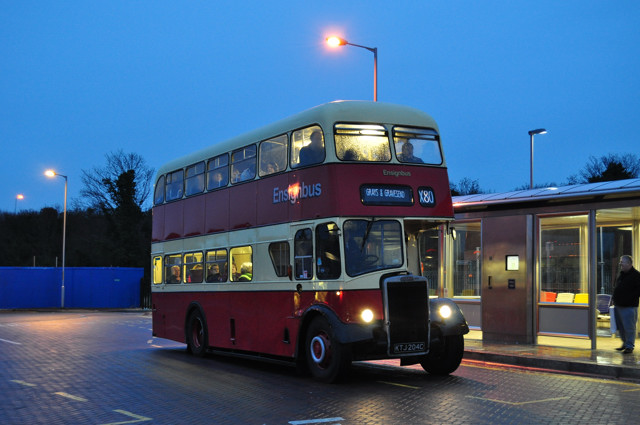 KTJ304C also on route X80 at Greenhithe Station at dusk. 5 December 2009. Photograph. John King. |