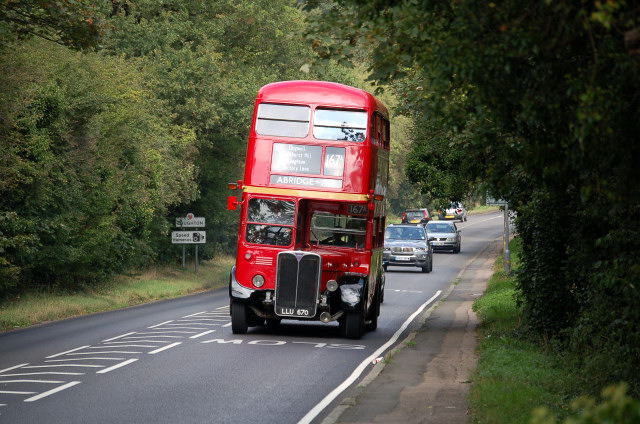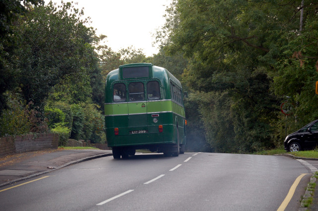 A rear view of RF28 climbing a leafy High Road, Loughton on the Loughton and Epping running day. 9 September 2007. Photograph. John King. |