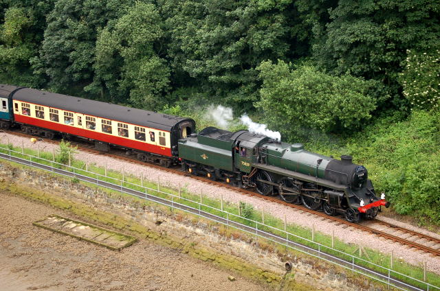 A closer view of 75029 at one time named "The Green Knight" running alongside the River Esk, Whitby. 19 June 2007. Photograph. John King. |