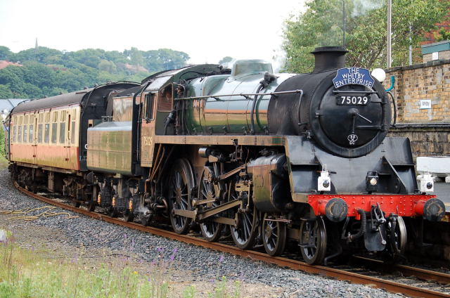 Here 75029 is seen in Whitby Station. At certain times trains run through to Whiby from Grosmont. 16 June 2007. Photograph. John King. |