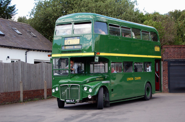 Greenline liveried RT3228, demoted here to bus work running route 402 out to Tonbridge Station. 12 July 2009. Photograph. John King. |