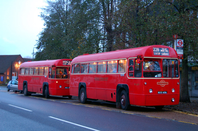 RF429 and RF489 seen at the Gordon Arms stand in Chislehurst at dusk.