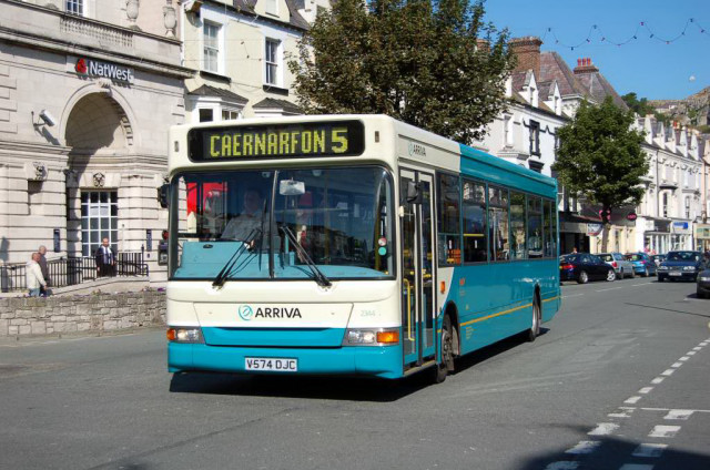 Arriva Cymru 2344 on route 5 to Caernarfon. seen in Mostyn Street, Llandudno. 14 June 2008 Photograph. John King. |