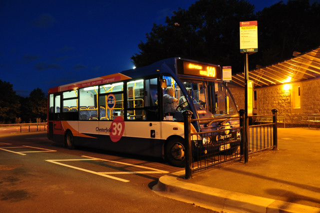 Seen at Matlock Bus Station at night is Stagecoach 47322 on route 140. 24 August 2010. Photograph. John King. |