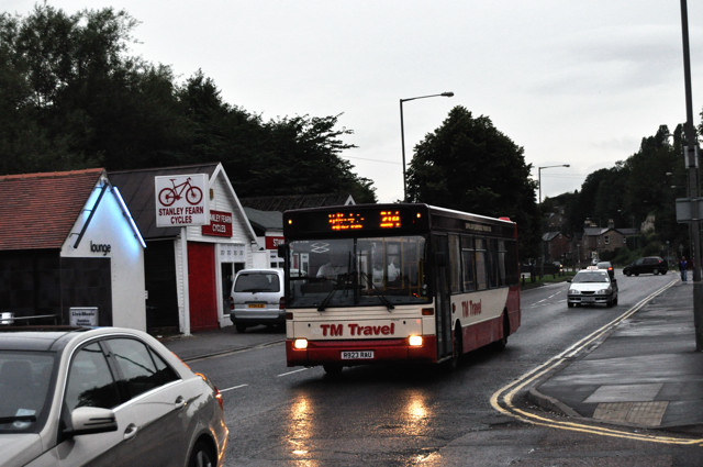 Seen in Matlock is TM Travel 923 on route 214 on a wet evening. 25 August 2010. Photograph. John King. |