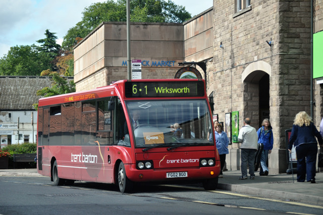 Trent Barton FG02BGO is on route 6.1 at Matlock Market. This used to be Matlock Bus Station. 23 August 2010. Photograph. John King. |