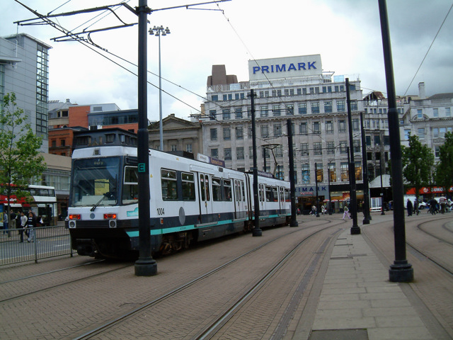 Metrolink 1004 named The Robert Owen. Seen in Piccadilly. 21 June 2004. Photograph. John King. |