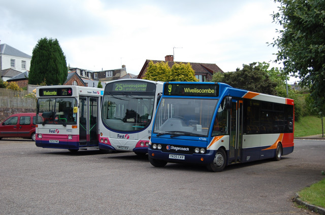 Stagecoach 47586 seen on route 9 on the road to Wivelsicombe. 22 June 2009. Photograph. John King. |