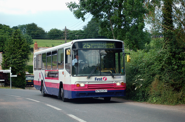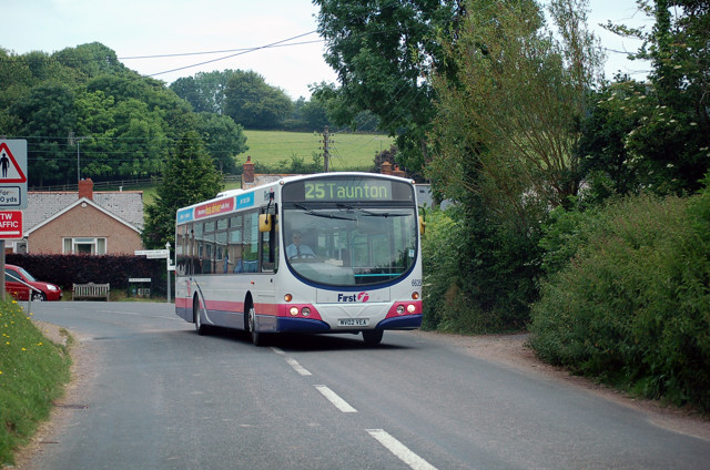 Seen at the Wiveliscombe terminus of route 25 at Langley Corner is First 60559. 24 June 2009. Photograph. John King. |
